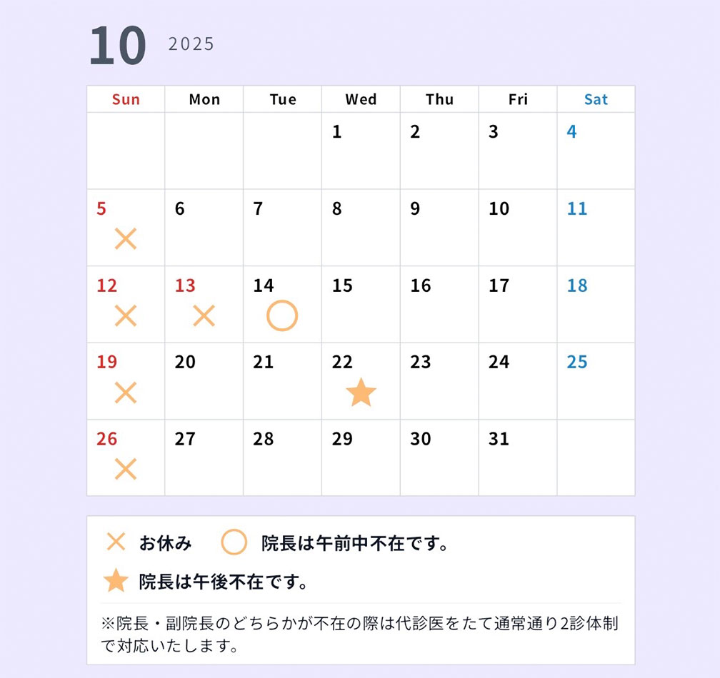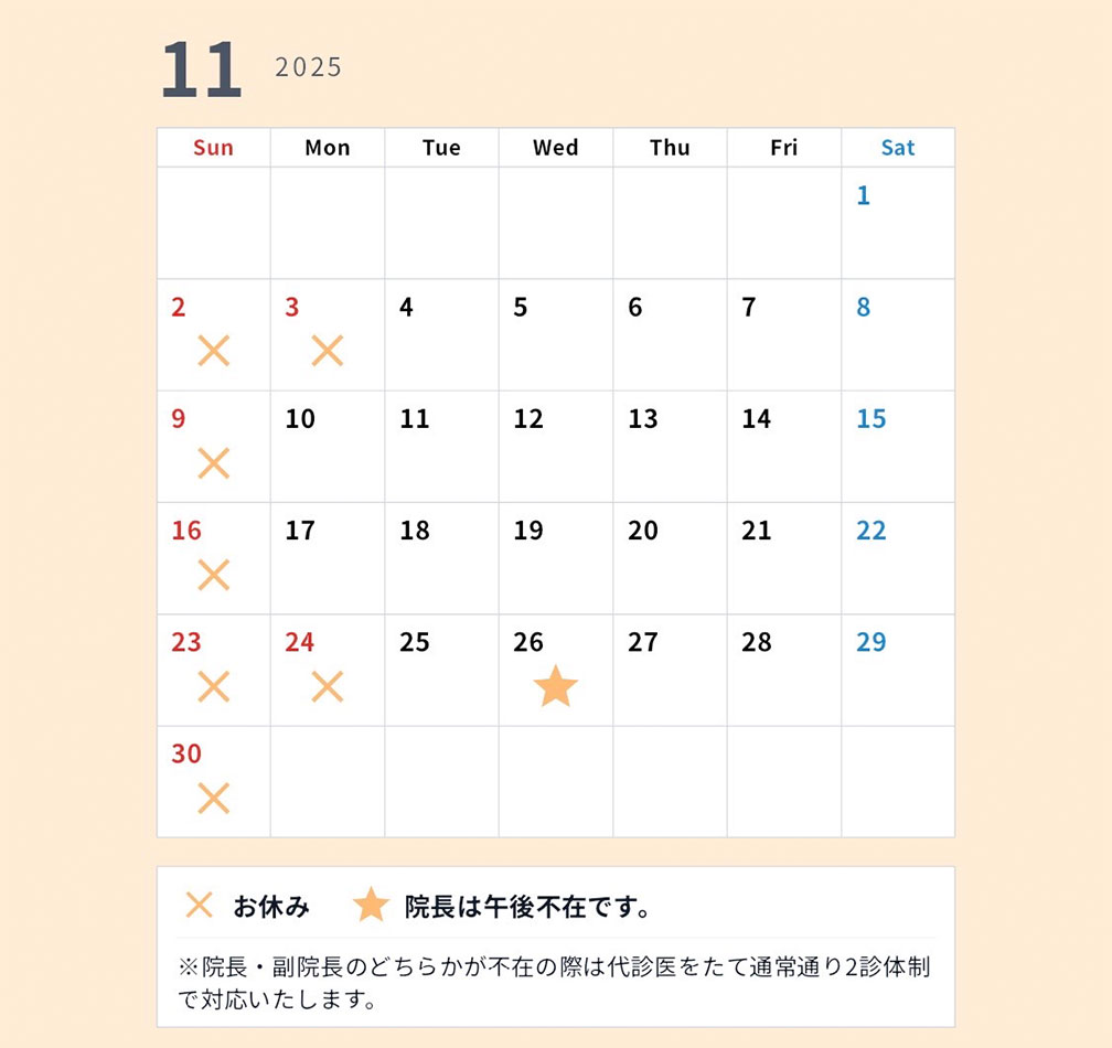 【TOPページの画面の下部にあります】10月、11月の診療カレンダーを更新しました。