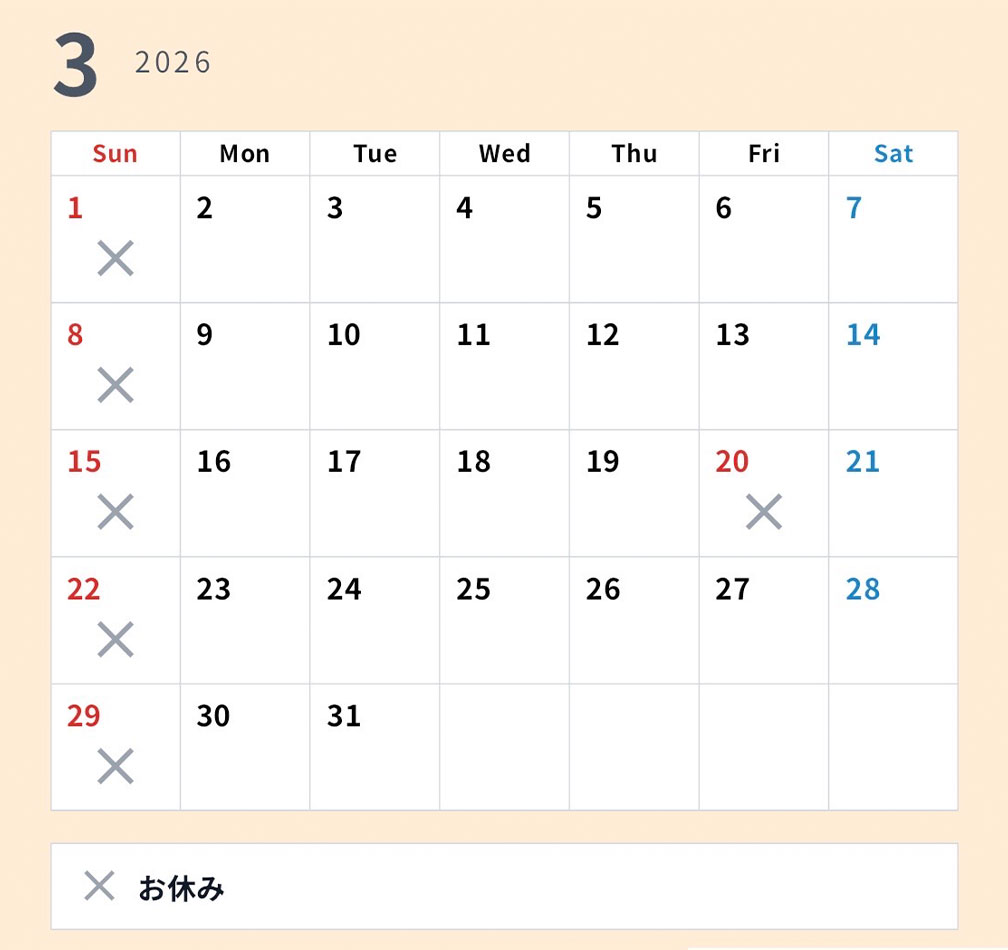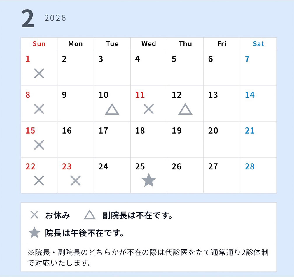 - 【TOPページの画面の下部にあります】2月、3月の診療カレンダーを更新しました。