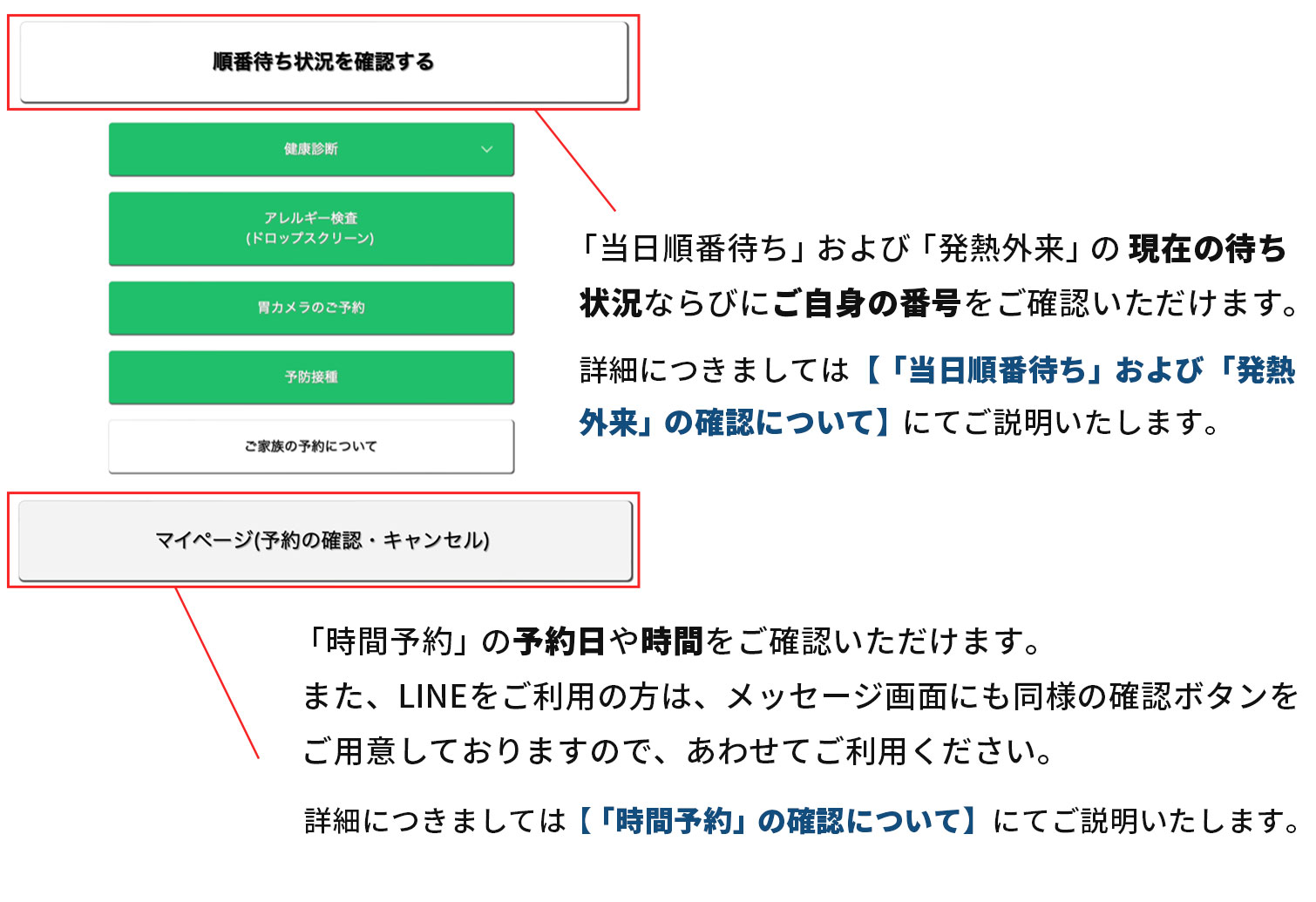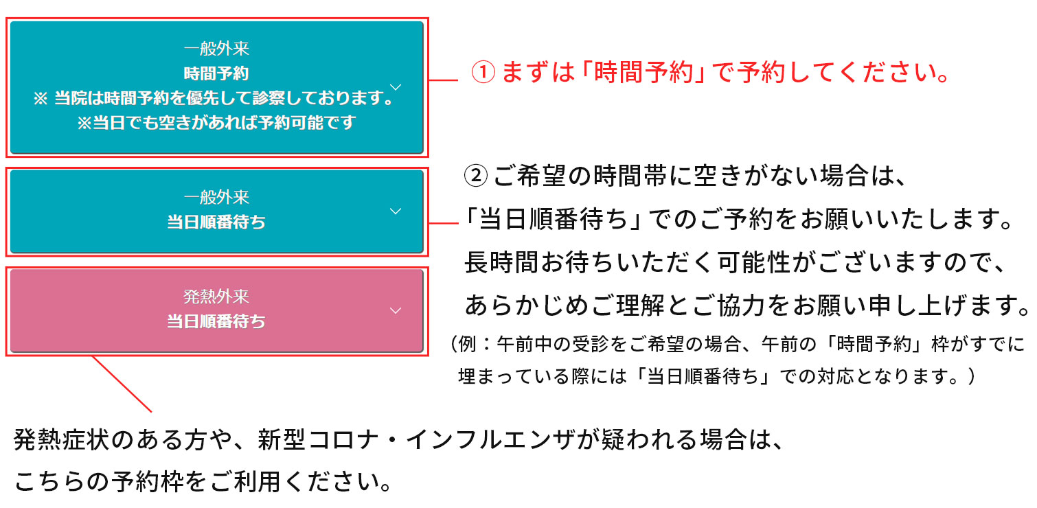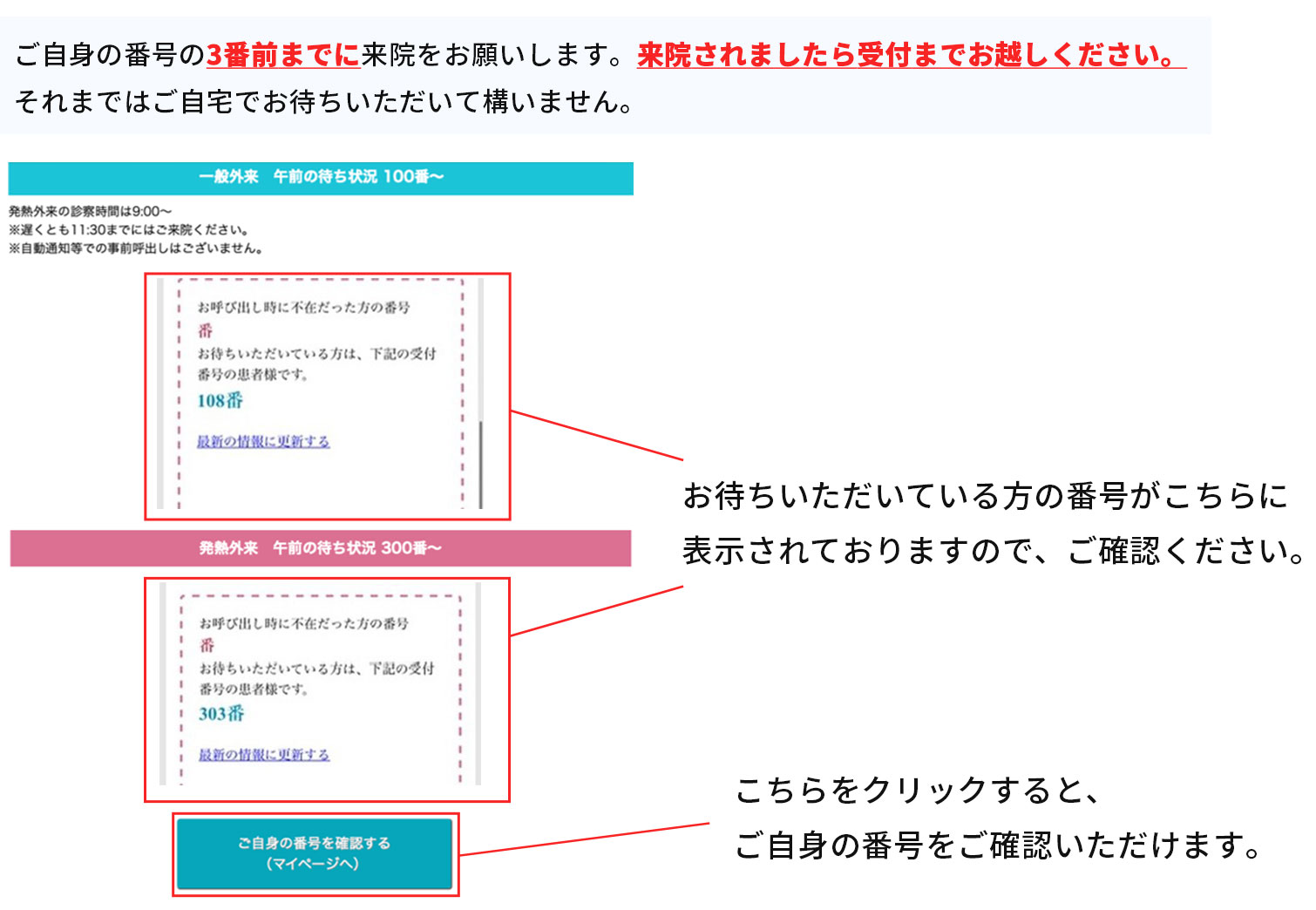 「当日順番待ち」および「発熱外来」 の確認について