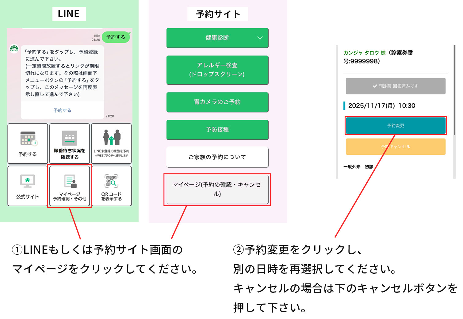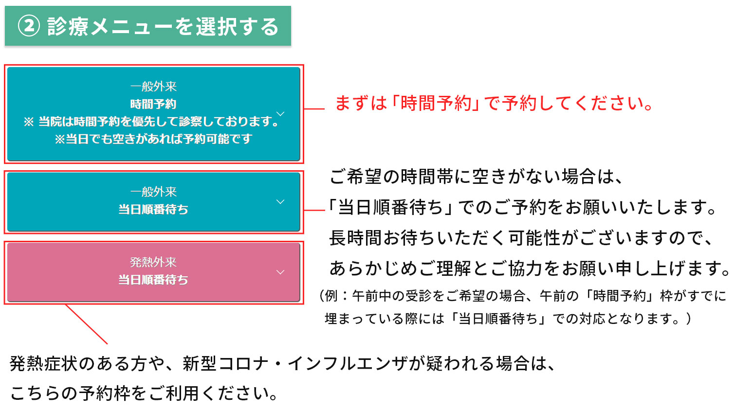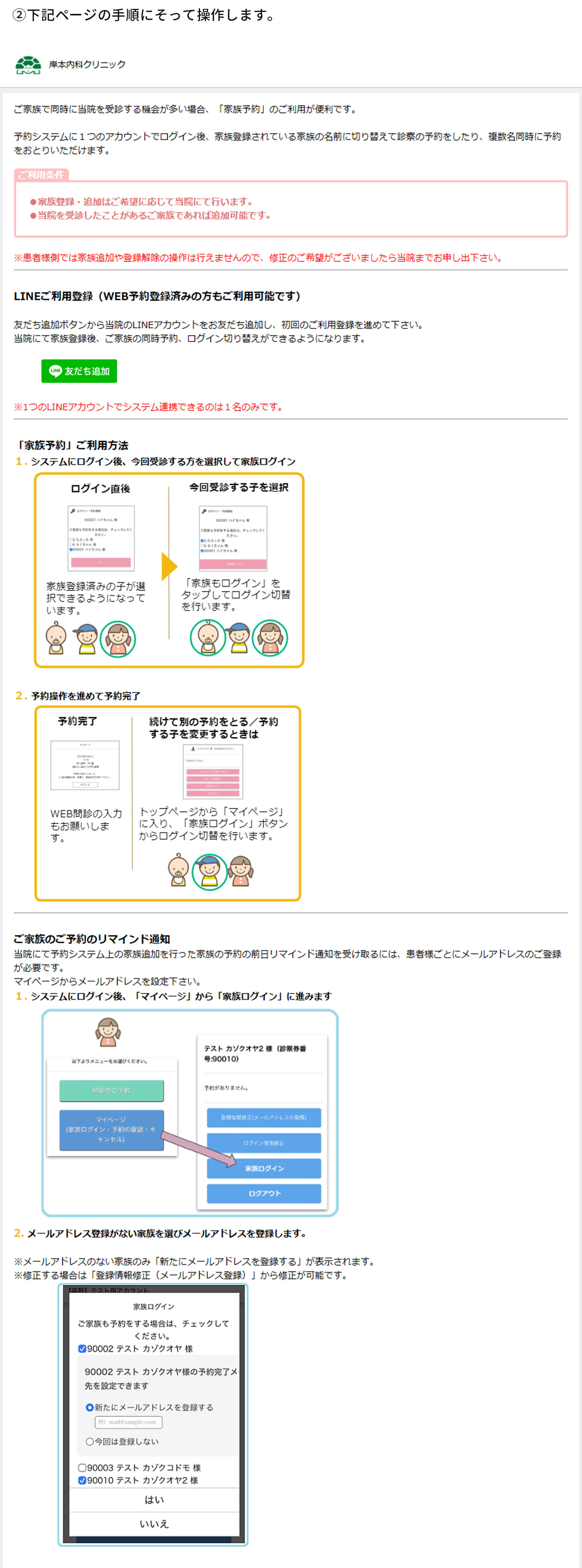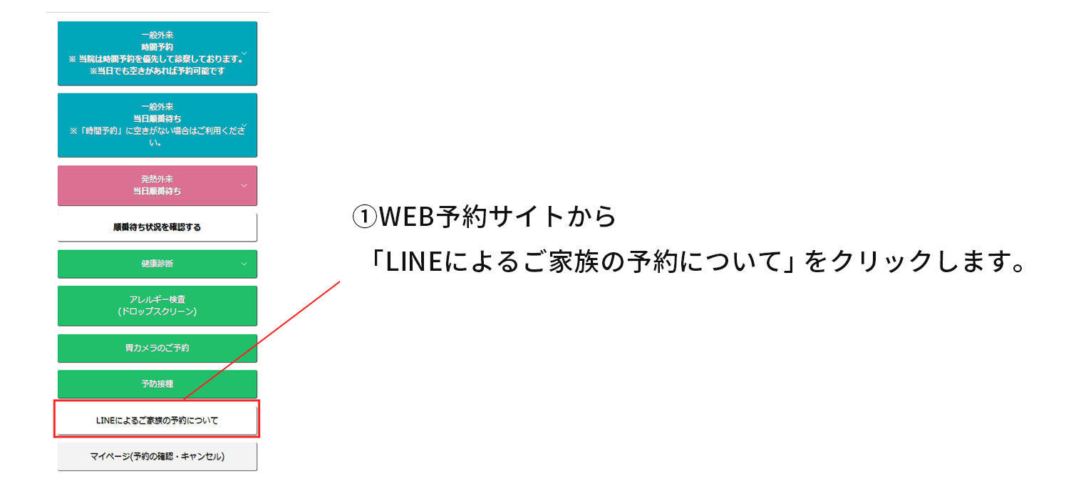 予約操作ガイド WEB・LINEでのご予約について 予約状況の確認について 「時間予約」の確認について 「当日順番待ち」および「発熱外来」 の確認について 予約変更・キャンセルについて LINEによるご家族の予約について WEB・LINEでのご予約について 予約状況の確認について 「時間予約」の確認について 「当日順番待ち」および「発熱外来」 の確認について 予約変更・キャンセルについて LINEによるご家族の予約について